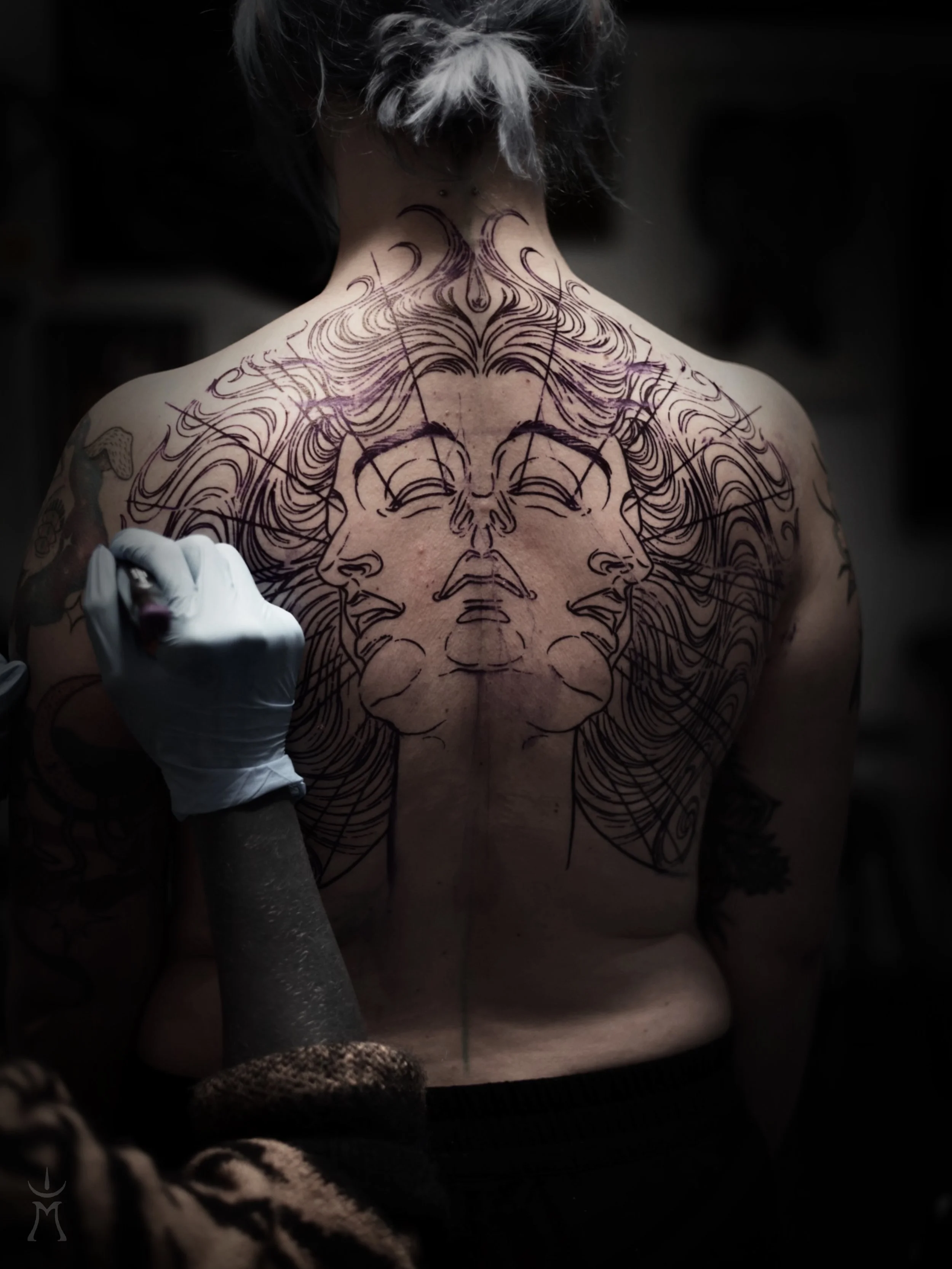 I specialise in creating intricate tattoos telling stories through symbols. I put a lot of emphasis on adjusting design to the body in best possible way. Large compositions are my priority as they allow to use a full body potential and to create outstanding pieces but I enjoy working on simpler designs as well.